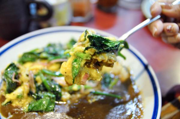ふわとろの玉子とホウレン草がカレーに合う