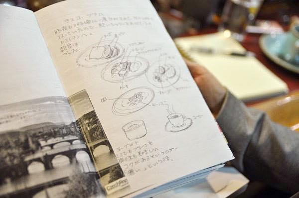 吉野さんの料理のアイデアは海外旅行などで美味しいものを食べたときに受けたインスピレーションを大切にしているとのこと。可愛らしい手書きの旅行記に食したものが記されていた。