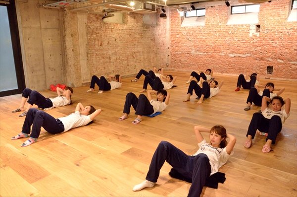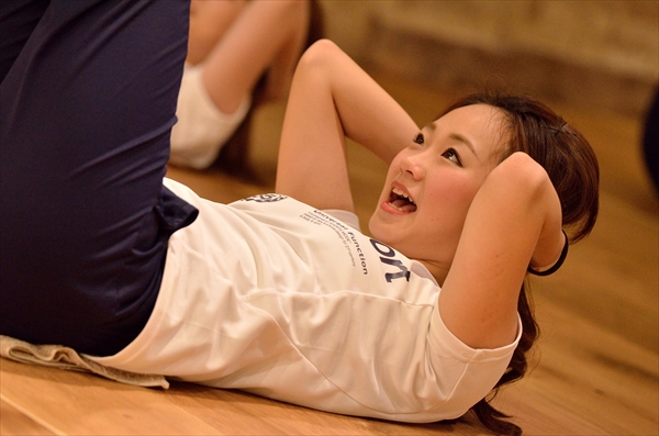 「(試合中)走って登場して、ハッピースターダンスを踊って、走って帰って、とやると、控え室に戻れないくらいゼーゼーしちゃいます。体力の必要な仕事です」とのこと。この日も腹筋運動や腕立て伏せなどが取り入れられ、メンバーたちは悲鳴を上げながらも必死にメニューをこなしていた。