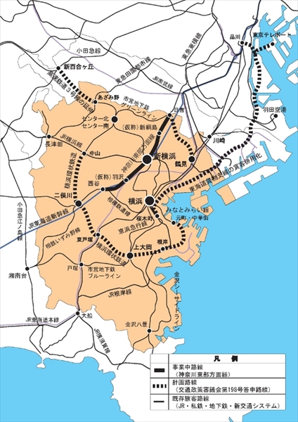 どちらも横浜市の鉄道計画に関するものだが、市としては今回のテーマである「あざみ野-新百合ヶ丘延伸」を優先度の高い計画としている。