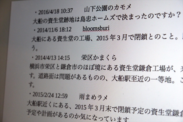 「資生堂鎌倉工場の跡地利用について、いくつかキニナルをいただいているのでまとめて調査してきてください」と、編集部から。