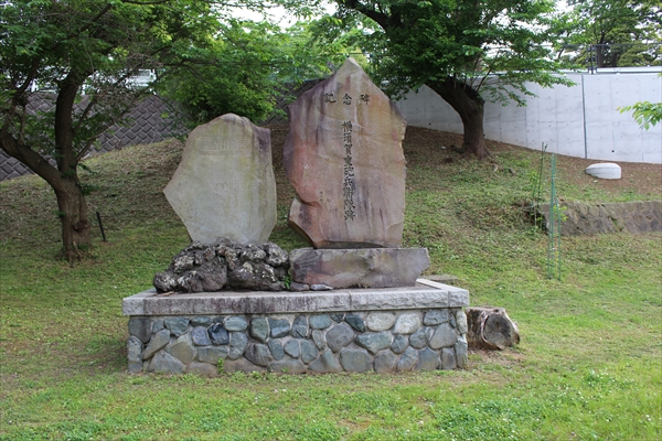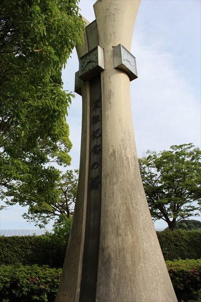 軍の施設であったことの転用を伝える「軍転記念の塔」