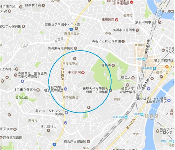 「鶴見区のごみ屋敷」のある場所(Googlemapより)