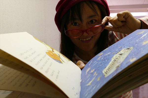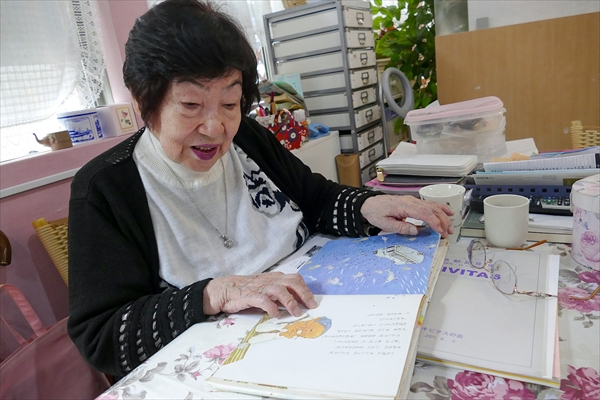 「全部ホントの話よ」と言いながら絵本をめくる簡さん