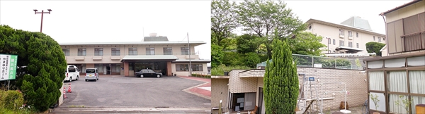 「やまゆりホーム」正面と、簡さん自宅からみた様子。以前車両はここにあった