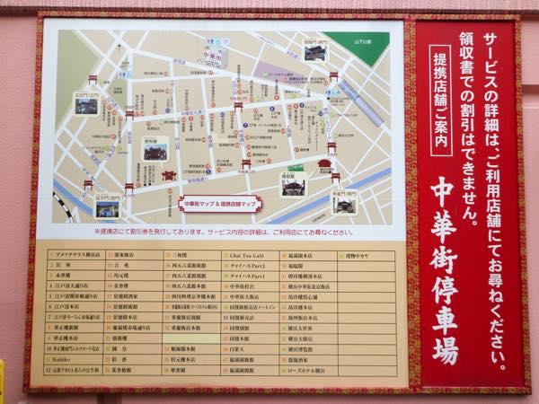 平日のみ1日最大料金が2000円となる。今のところ提携店はSEGA横浜中華街、聘珍大甘栗の中華街東門店の2店舗のみ。この店舗を利用すると金額によって割引料金となる。