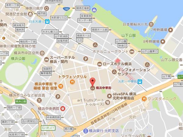 中華街は、山下公園やハマスタからも近い(Googlemapより)