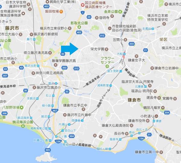 投稿にあるバス停の「島ノ神」は隣接する地区の地名から来ている。地区の面積は約32ヘクタール(横浜スタジアム約12個分)。鎌倉市の北西部に位置し、国道1号線や大船駅、藤沢駅に囲まれた場所にある。