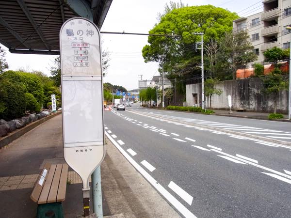 交差点から80メートルほど離れた「島の神」のバス停