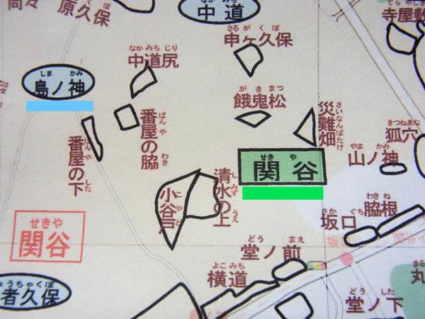 「古い地名は、『大字(おおあざ)』『小字(こあざ)』『小名(こな)』に分けられます。大字は広い区画を表し、複数の小字を含みます。小名は小字をさらに細分化した地名です。小字は比較的広い地区を示すため、そこに住む多くの人たちに知られた地名になりますが、小名は個人やその周辺住民など一部の人しか理解できない呼び名であるのが一般的です。『島ノ神』の場合、大字が『関谷』・小字が『島ノ神』になります」