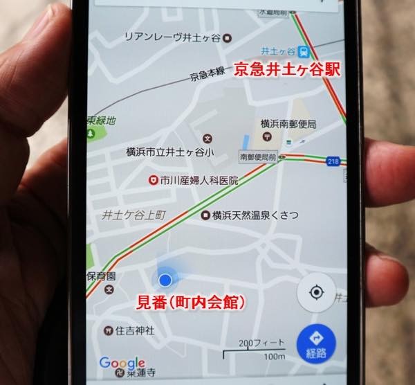 スマホで場所を確認。井土ヶ谷駅から徒歩8分くらいのところにある
