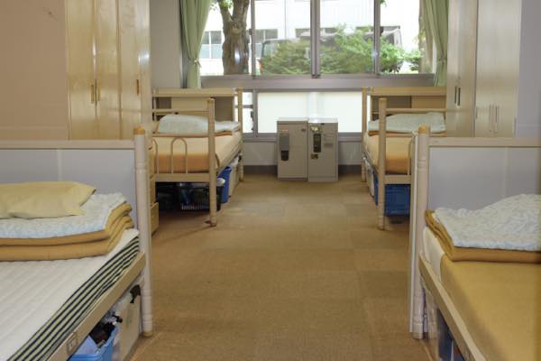 続いて学生舎内へ。居住スペースは、自習室と寝室の2部屋がセット。通常、8人ほどで使っている。