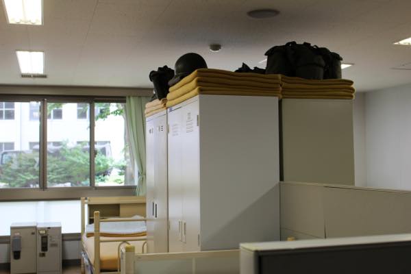 ベッドを整えてから、着替えを済ませ、整列まで2分、というのが一般的な学生の行動スピードとのことだ。
