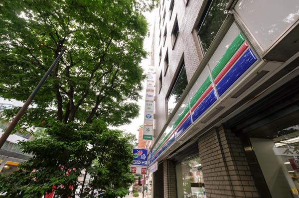 ビルの1階はスリーエフ店舗で、ドリンクや弁当などが充実していた