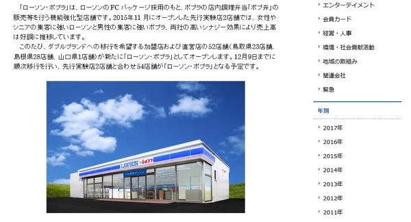 ローソンはすでに、山陰地方を中心に店舗展開していた「ポプラ」と資本業務提携し、「ローソン・ポプラ」ブランドに転換している実績があった。ポプラの店内調理弁当「ポプ弁」も販売し、機能強化型店舗としてシナジー効果を発揮していた。