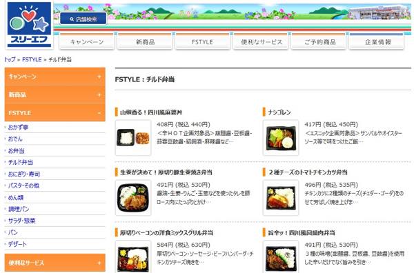 ファンの多いチルド温度帯弁当は今後も販売継続(スリーエフホームページより)