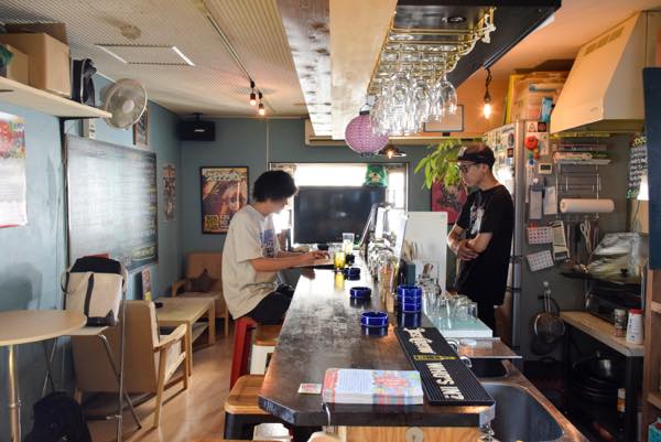 内装の基礎は大工さんにお願いしたそうだが、床の張替えや、壁の塗装、棚、黒板、DJブースの設置などは、友達を集めて手作りしたそうだ。