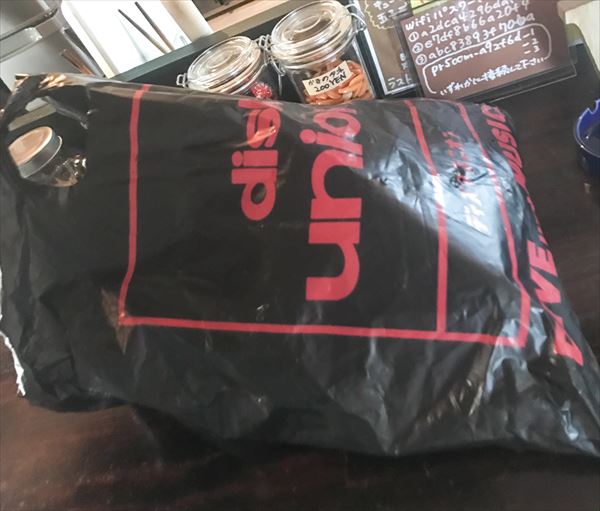 手に持っていたバックはディスクユニオンのレコ屋袋!