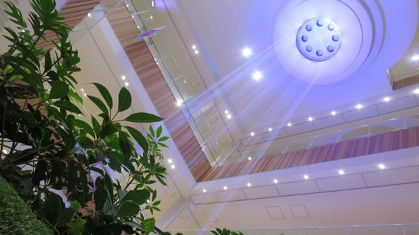 エントランス正面に見えるあの青いライトらしきモノは・・・?