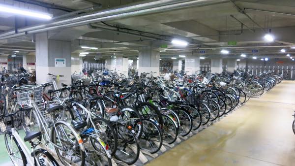 駅前バスターミナルの地下全てが広大な駐輪場になっている
