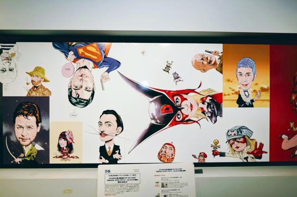 3階で降りたらすぐに目に飛び込んできたのは、雑誌『ぴあ』の表紙でお馴染みの及川正通(おいかわ・まさみち)さんの描いた数々のイラスト。