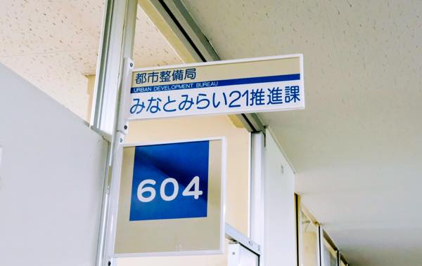 関内の横浜市庁舎内にある「みなとみらい21推進課」へ