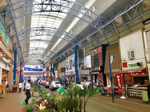 写真右の建物はC北地区内の店舗。左の建物はB地区「カミオ」の商業施設
