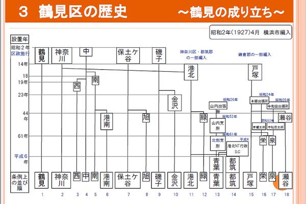 「鶴見は横浜市で最初にできた5区のうち、90年間分割されずに今日に至った唯一の区です」との説明。なるほど、ほかの4区と比べて鶴見がより盛り上がっているのは、そうした一因があるのか。