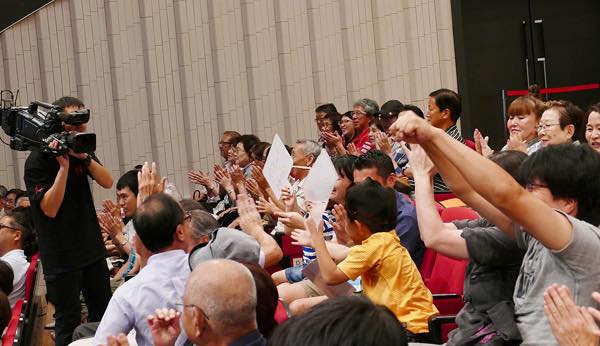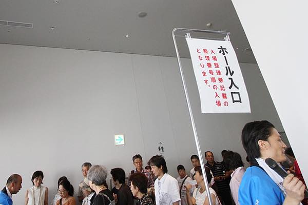 午後0時40分、開始前の着席を促すブザーが鳴った。「よこはま鶴見」と書かれたハッピ姿の人が、最初に舞台に上がった。