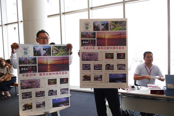 入場を待つロビーでは、鶴見区制90周年記念の切手の販売もあった