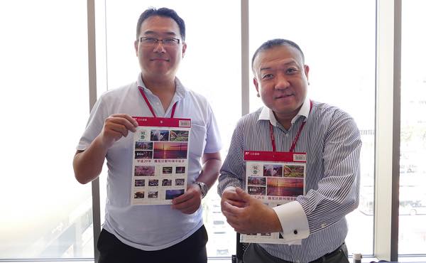 飯塚さん(右)と横浜東寺尾郵便局の局長、豊田智寛(とよだ・ともひろ)さん