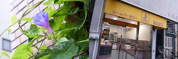 早朝の朝顔はまだ夢うつつ、早起きのパン屋さんはまだ準備中