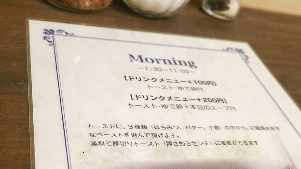 メニューにはうれしいモーニングセットがあった。