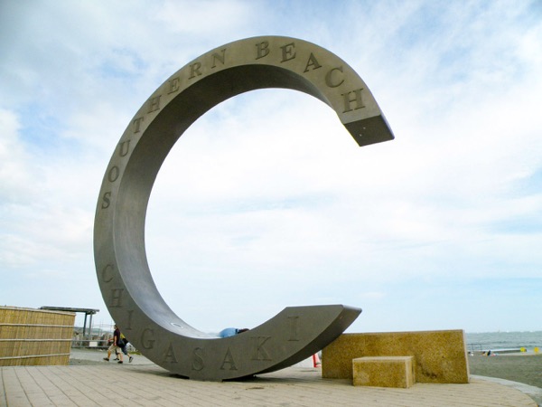茅ヶ崎のサザンビーチのモニュメント。茅ヶ崎と言えばサザンのイメージ