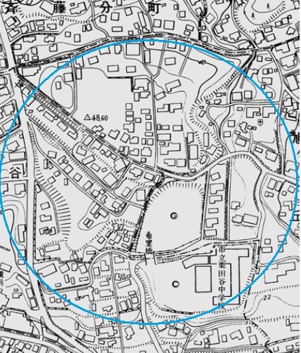 次に栗田谷中学校の近くに住む男性に伺うと「山の一部を栗田谷中学校のグラウンドを作るために壊したことがあります。40メートルほどの高さの崖でした。70年前はありましたが、30年前にここに移り住んだときにはなくなっていました」という。