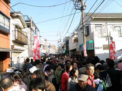まるで「アメ横」のような人だかりの、生麦魚河岸通り