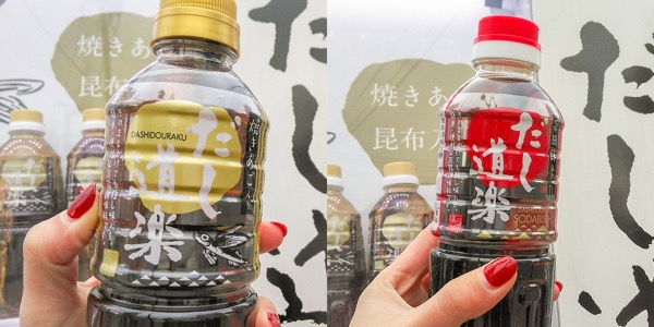 投稿にあった通り、有料駐車場の敷地内にペットボトル容器に入った出汁が、1本700円で販売されていた。