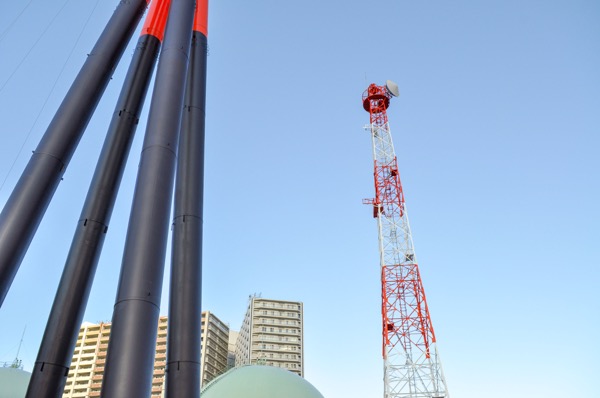 ガスホルダーを管理している東京ガス株式会社の平沼整圧所へ問い合わせると、「建設中の鉄塔は東京ガスのもの」だという返答があったので、早速取材を申し込んだ。