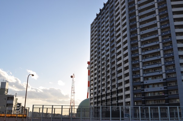 高層マンションの向こう側に、それっぽい鉄塔を発見!