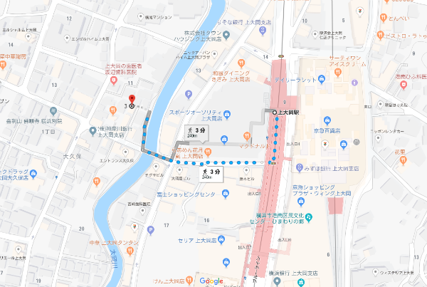 京浜急行「上大岡」駅4番出口より徒歩3分ほど(Google Mapより)