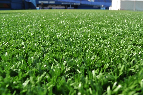 選手たちの活躍にも影響する人工芝の張替えも完了した。