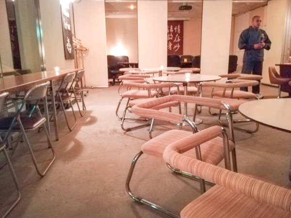 オープン直後の店内。左に見える長テーブルと椅子は、やはり会議室っぽい