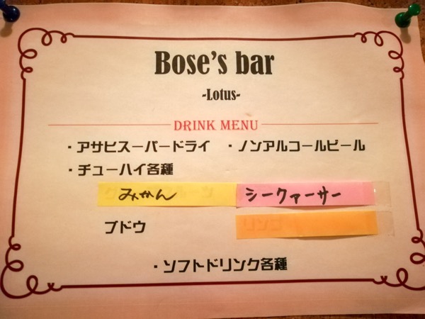ドリンクメニュー。チューハイは毎回内容が違うようだ