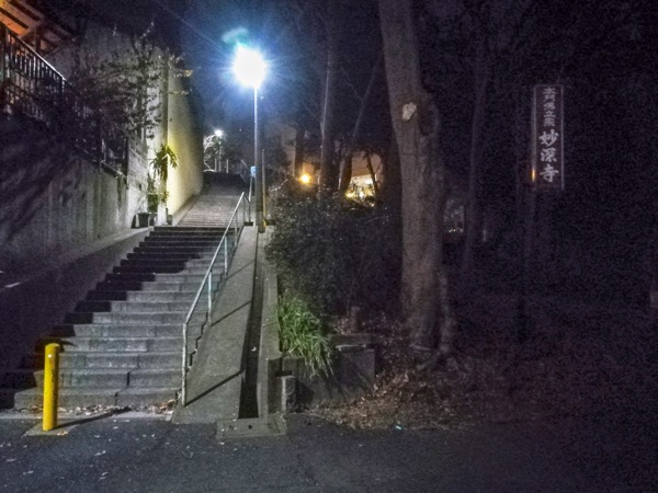 最後の難関! 暗闇に浮かぶ「妙深寺」の文字