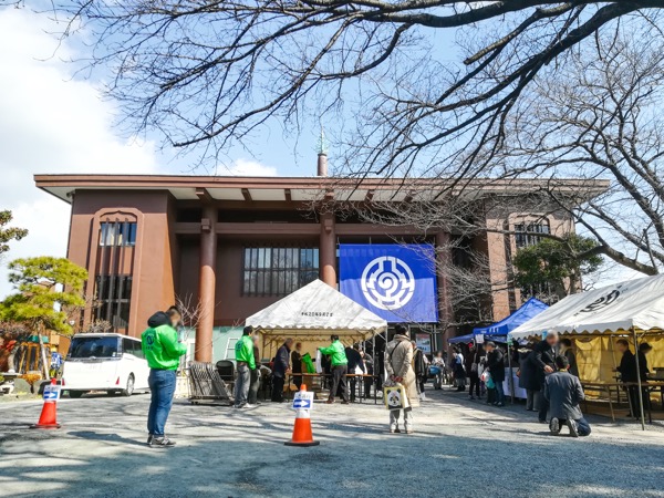 本堂より手前の建物には普段会議室として使われている部屋があり、坊主バーはそこで開催される。入口にたどり着く前にいくつか看板が出ているが、それらは全てお坊さんの手作りである。