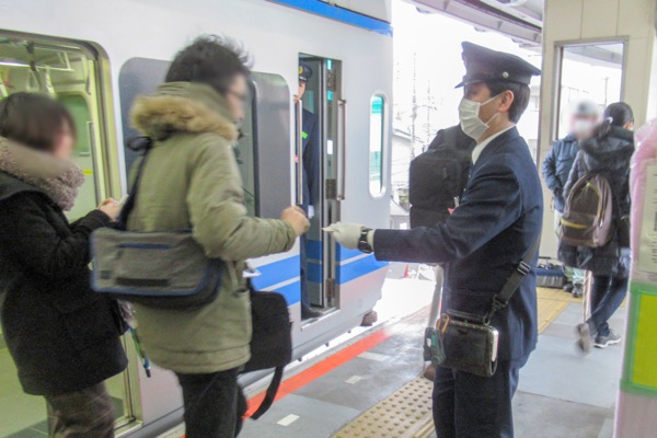 既存機器を撤去する間、乗客に協力してもらう場面もある