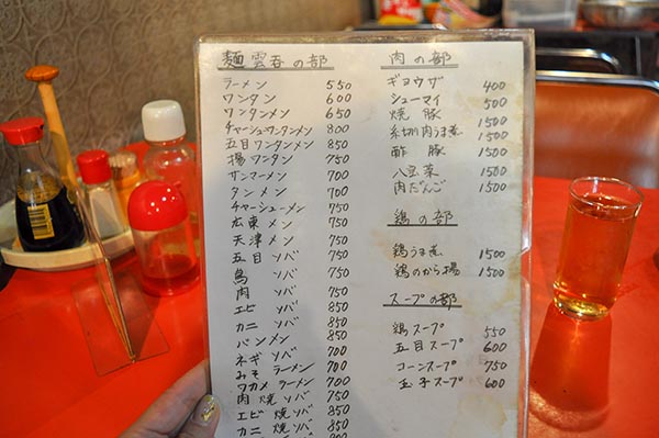 テーブルに置いてあるメニューに「ギョウザ」を発見