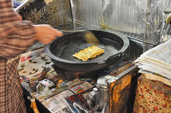 フライ返しでギュっと押し付けながら焼き目をつけていた