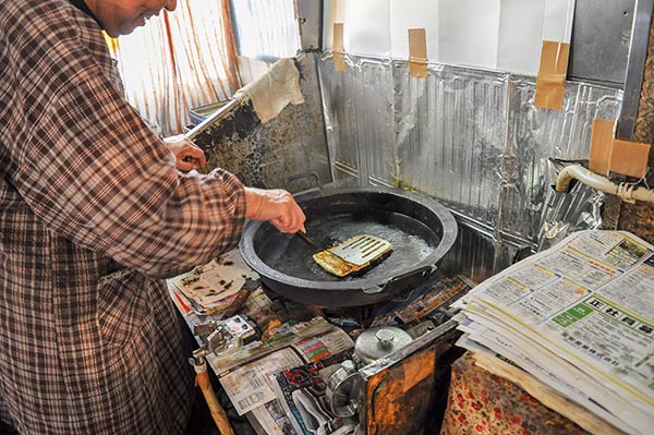女将さんが向かったのは、なんとレジの隣にある小さな鉄板の前!
