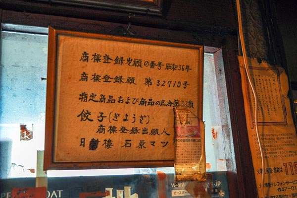 登録商標については、「私の母の時代の話だから、今はもう有効じゃないと思うんだけどね(笑)。もう70年近くお店をやってるけど、餃子をお店で出したときからうちでは枕詞みたいな使い方をしているよ」と女将さん。
